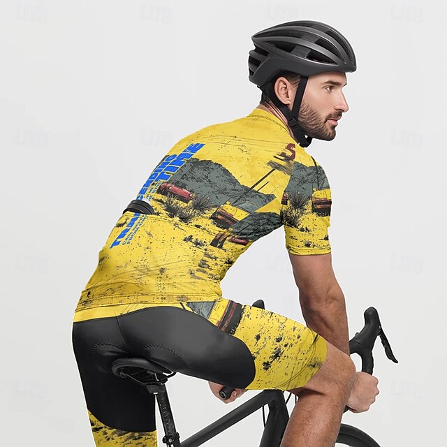 trending ! Men's Cycling Jersey Gradient Letter & Number Short Sleeve Bike Tee Tshirt Jersey with 3 Rear Pockets Mountain Bike MTB expedient Dry Anatomic Design Wicking Breathable Sports Yellow Blue Fuchsia