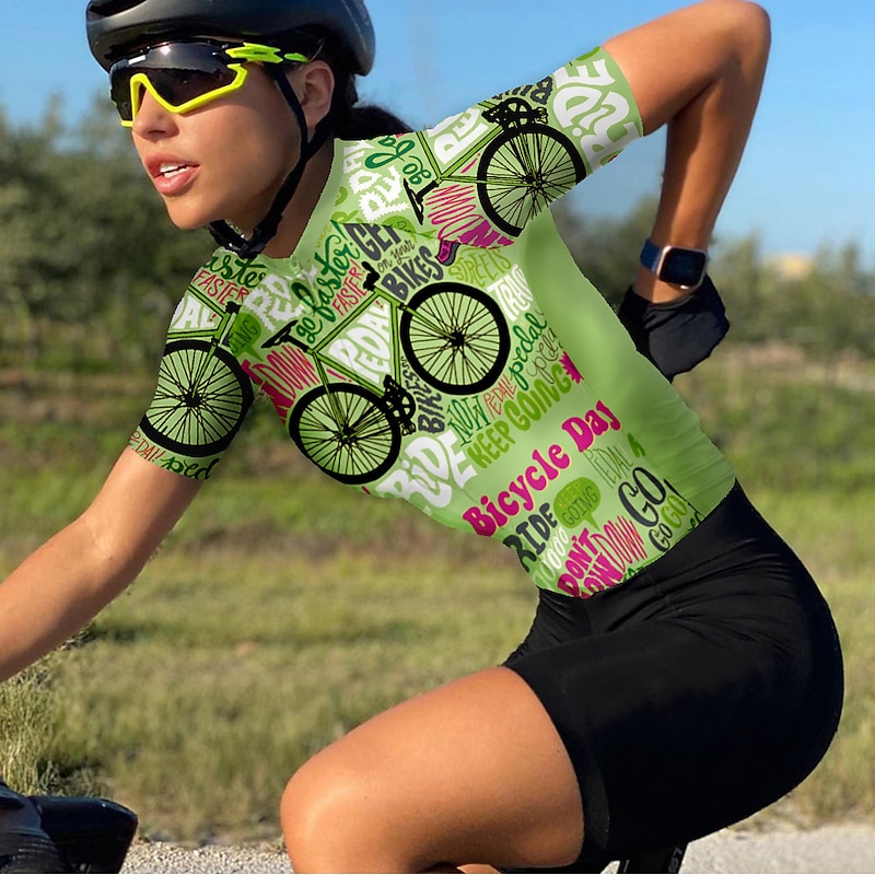 More information about 21Grams Women's Short Sleeve Cycling Jersey With 3 Rear Pockets Summer Bicycle Riding Bike Top Breathable rapid Dry Moisture Spandex Polyester Dark Pink Light Green Blushing Pink Mountain Bike MTB