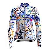 Women's Cycling Jersey Graffiti Funny Long Sleeve Bike Jersey Top with 3 Rear Pockets Mountain Bike MTB Road Bike Cycling rapid Dry Reflective Strips Back Pocket Moisture Wicking Sports Red Royal