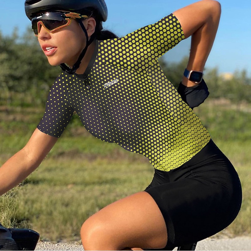 trending ! Women's Cycling Jersey Polka Dot Short Sleeve Bike Jersey Top with 3 Rear Pockets Mountain Bike MTB Road Bike Cycling expedient Dry Reflective Strips Back Pocket Moisture Wicking Sports Yellow Pink Blue