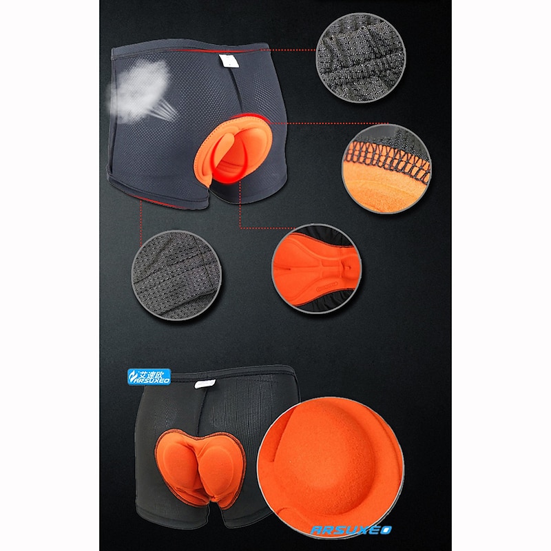 Arsuxeo Men's Cycling Under Shorts Cycling Underwear Black Bike Underwear Shorts Padded Shorts Chamois Mountain Bike MTB Road Bike Breathable 3D Pad rapid Dry Anatomic Design Sports Polyester Coolmax®