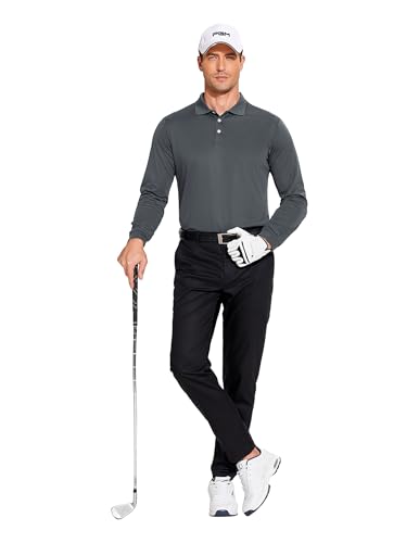 PINSPARK Long Sleeve Polo Shirts for Men Moisture Wicking Golf Shirts rapid Dry Work Hiking Casual Collared Shirt