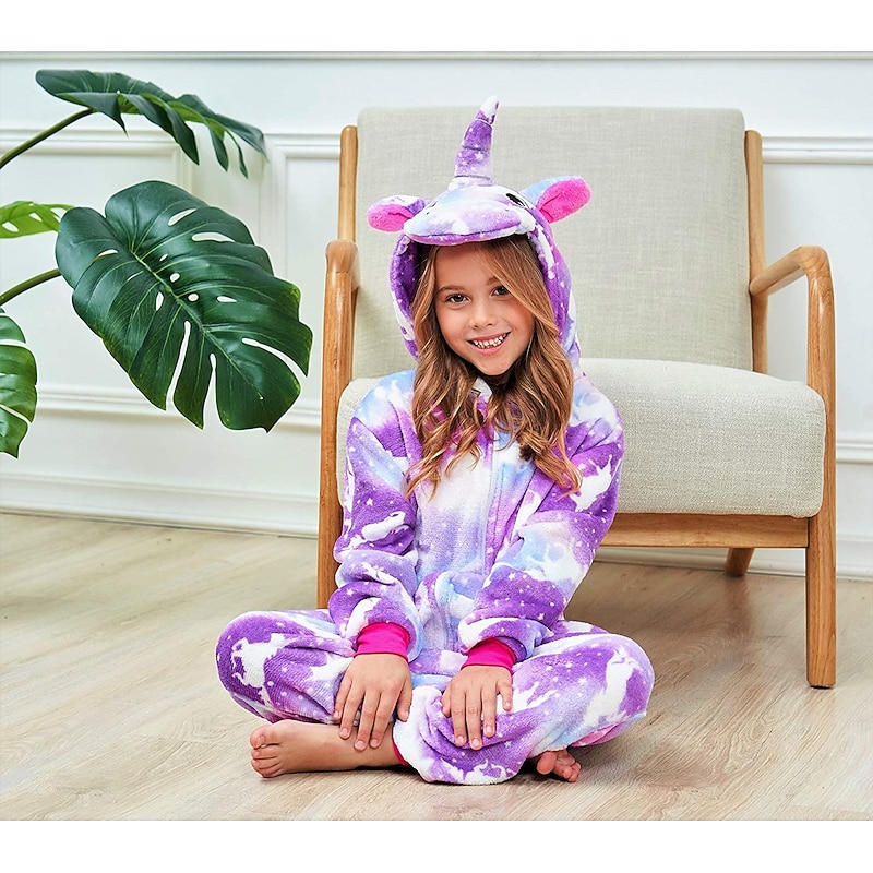 Highlights [Fabric] : Crafted from high-quality flannelette, this unicorn-themed onesie offers a soft and plush feel, ensuring warmth and comfort for your child. The cozy material is perfect for keeping kids snug during leisurely moments. [Fit] : Designed with a relaxed fit, this onesie allows for easy movement, making it ideal for both playtime and lounging. The secure cuffs at the sleeves and ankles provide a snug fit, preventing any drafts from getting in. [Design Highlights] : Featuring a playful hood that boasts unicorn ears, a colorful mane, and a shiny horn, this onesie adds a whimsical touch to your childβs wardrobe. The vibrant multi-colored print in pastel hues of pink, blue, and green enhances its magical appearance. A convenient front zipper closure allows for easy dressing and removal. [Occasions] : Perfect for carnival celebrations, costume parties, or simply for cozy nights at home. This charming onesie doubles as both a playful costume and cozy sleepwear, delighting young unicorn enthusiasts in a variety of settings. [Size Notice] : Available in sizes ranging from 100cm to 140cm, suitable for children aged 3 to 8 years, ensuring a perfect fit for growing kids. Perfect for everyday use. finest materials and excellent craftsmanship ensure long-lasting durability.