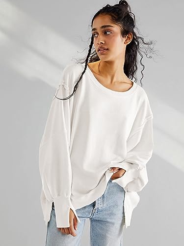 Fabric type: 56.1% Cotton; 43.9% PolyesterCare instructions: Machine WashOrigin: ImportedClosure type: Pull OnOVERSIZED DESIGN: Relaxed-fit crewneck sweatshirt featuring an intentionally loose, slouchy silhouette perfect for casual everyday wearUNIQUE SPLIT SIDES: Distinctive side slit detailing adds modern flair and enhanced mobility to this contemporary sweatshirtVERSATILE STYLE: Classic crewneck design pairs effortlessly with jeans, leggings, or shorts for a trendy casual lookCOMFORTABLE FIT: Roomy sleeves and relaxed body provide unrestricted movement while maintaining a fashionable appearanceTHOUGHTFUL DETAILS: Features ribbed cuffs and hem, reinforced seams, and a soft cotton-blend fabric for lasting comfort Perfect for everyday use. finest materials and excellent craftsmanship ensure long-lasting durability.