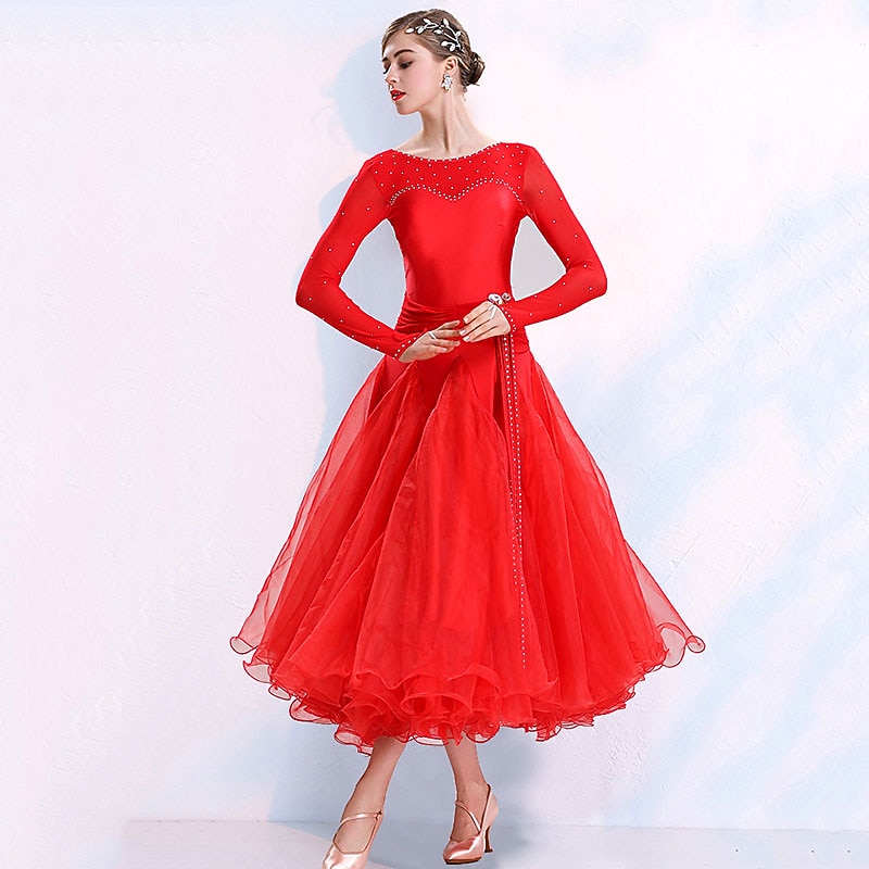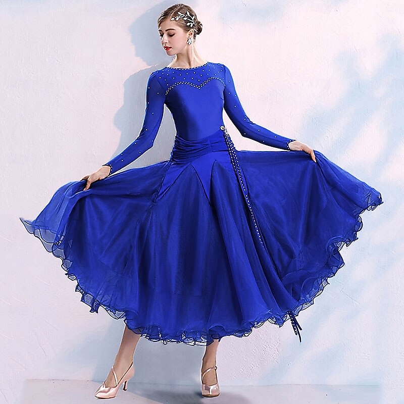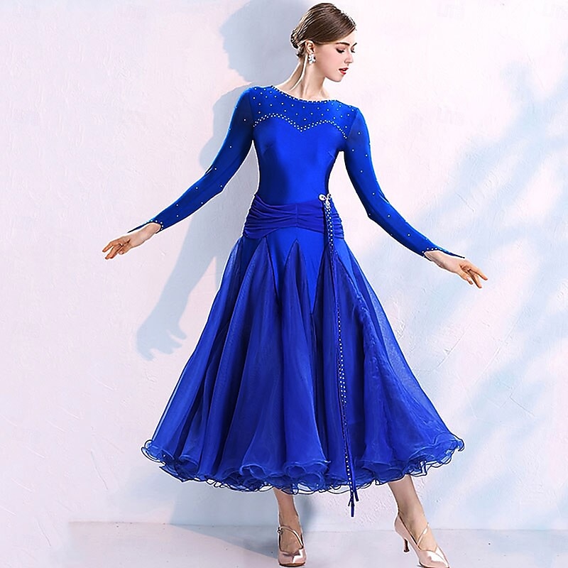 $184.99 - Ballroom Dance Dress Split Joint Crystals / Rhinestones Women's Training Performance Long Sleeve Spandex Organza Polyster 2025. Shop for cheap Standard  Ballroom online? Buy at lightinthebox.com on sale today!