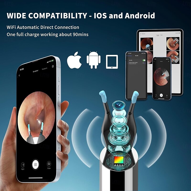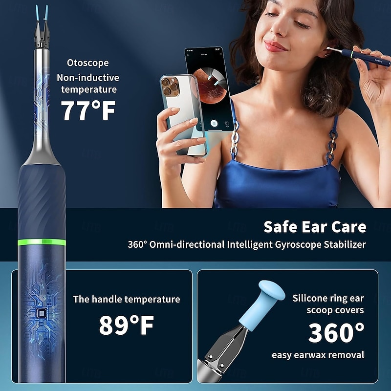 Highlights 3-MODE DEEP CLEANING : Utilizes blue, red, and green LED lights with adjustable heat/intensity levels to safely dissolve and remove earwax buildup without discomfort. 3-IN-1 MULTI-FUNCTIONAL TOOL : Combines ear cleaning, dental care, and otoscope inspection in a single compact device for versatile personal hygiene. LONG-LASTING USB-C CHARGE : Built-in rechargeable battery delivers up to 2 hours of continuous use per charge, with included USB-C cable for on-the-go convenience. ERGONOMIC SAFETY DESIGN : smooth loop tip and intelligent mode settings protect sensitive ear canals while ensuring thorough wax extraction. UNIVERSAL APPLICATION : Suitable for adults and children of all ear sizes, providing gentle yet effective cleaning for optimal ear health maintenance. Perfect for everyday use. finest materials and excellent craftsmanship ensure long-lasting durability.
