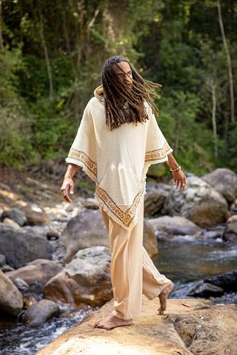 Why Choose AJJAYA VECHO Poncho Beige Mens Hooded Vegan Textured Cotton with Hood Block Printed Tribal Pattern Gypsy Festival Boho ritual?