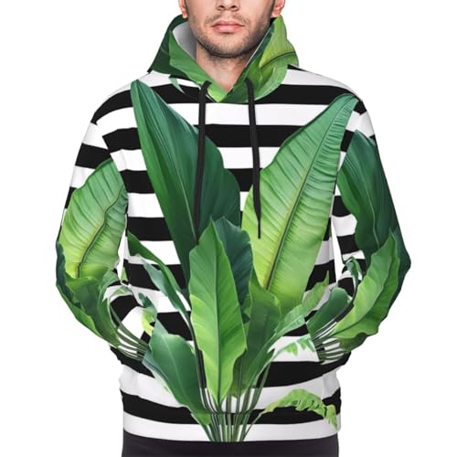 Men'S Hoodies Pullover Green Palm Leaf Print Hooded Sweatshirt Long Sleeve Hoodie Casual Tops With Pocket