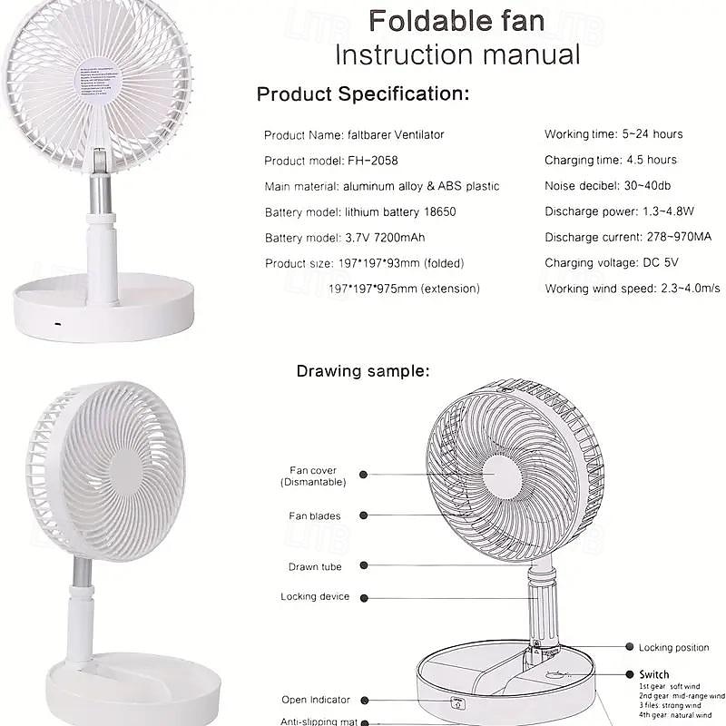 More information about Telescopic Folding USB Fan – Portable Electric Fan for Dormitory, Office, Desktop, Rechargeable and Quiet