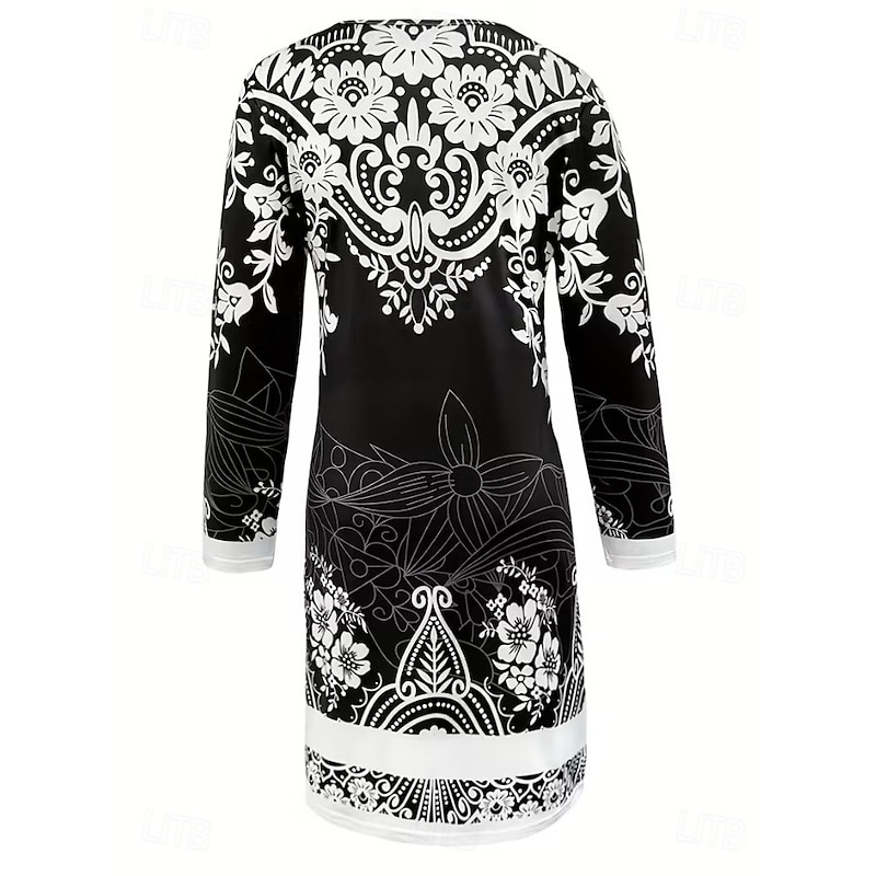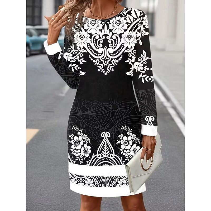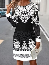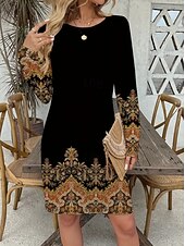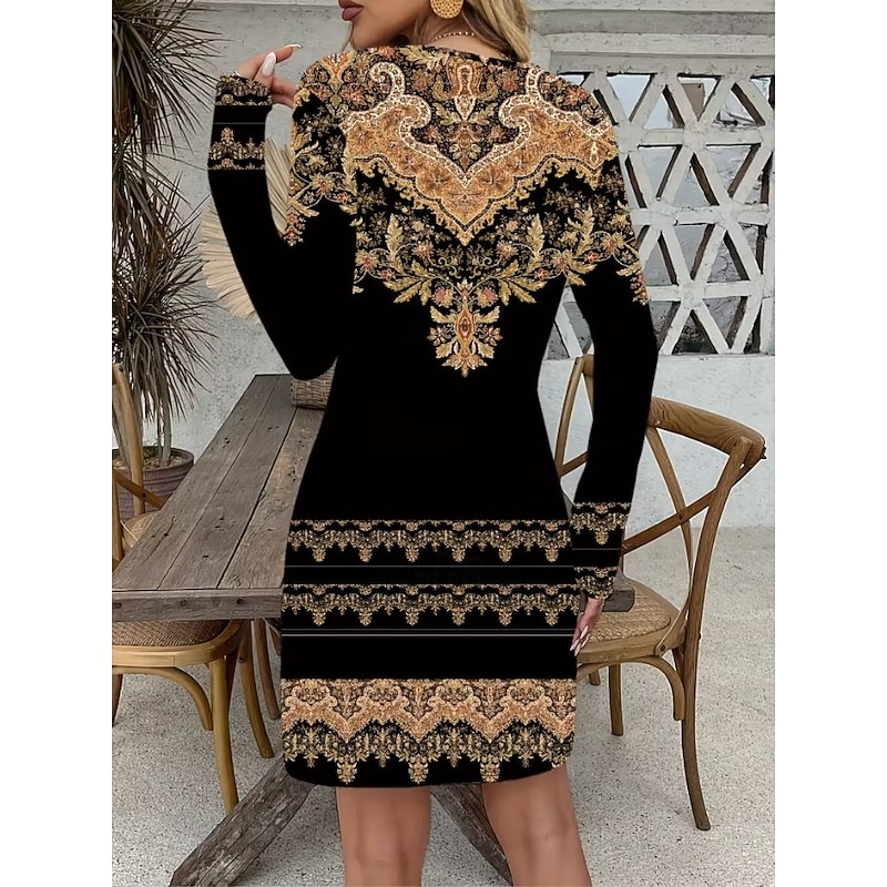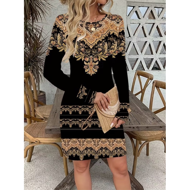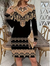 trending ! Women's Mini Dress Corset Dress Vacation Casual Boho Birthday Daily Holiday Regular Fit Graphic Paisley Tribal Long Sleeve Crew Neck Black Gold Gray Spring Fall Winter