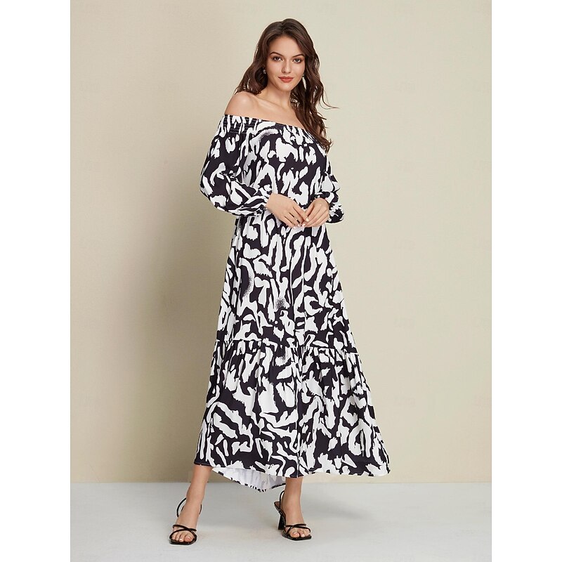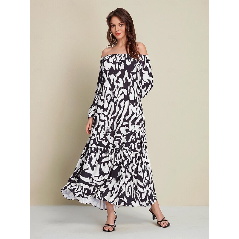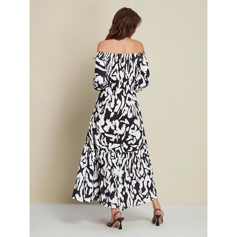 Why Choose Satin Abstract Graffiti Print Off Shoulder Maxi Dress?