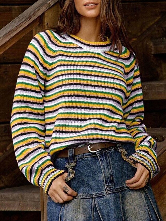This Women's Sweater Pullover Fashion Casual Striped Ribbed Crew Neck Knitted Long Sleeve Regular Tops Knit Outdoor Daily Weekend Yellow Fall Winter combines elegant design with practical functionality. Every detail has been carefully considered to ensure you get the premier possible experience. The top-grade construction means this product will serve you well for years to come.