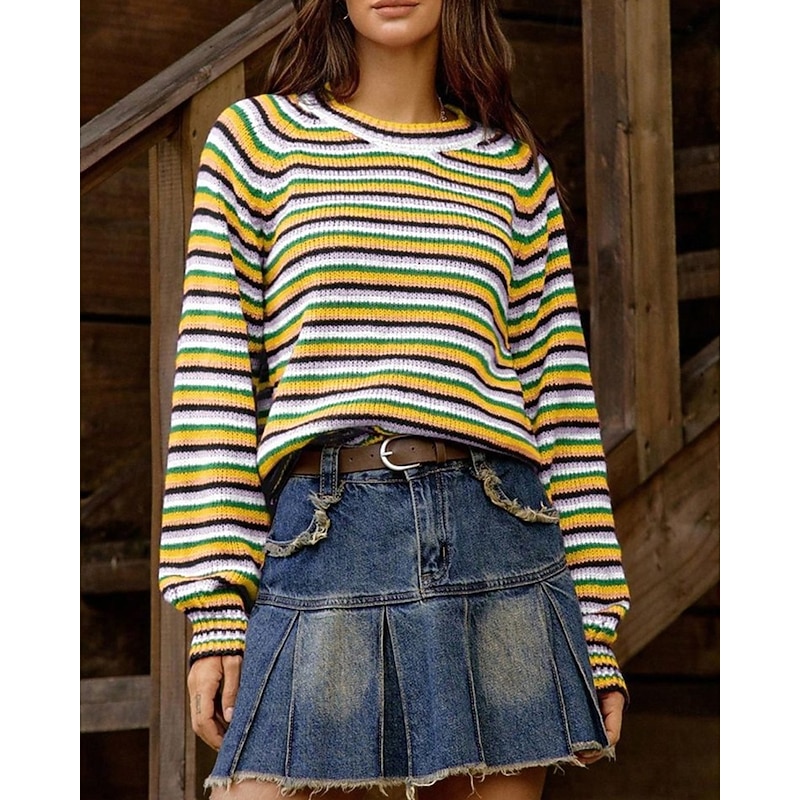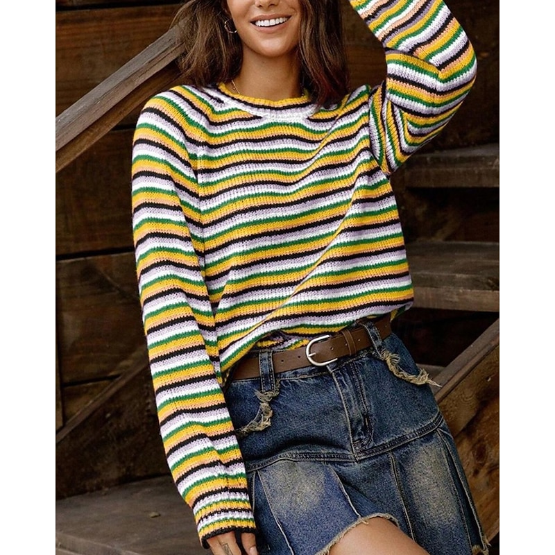Why Choose Women's Sweater Pullover Fashion Casual Striped Ribbed Crew Neck Knitted Long Sleeve Regular Tops Knit Outdoor Daily Weekend Yellow Fall Winter?