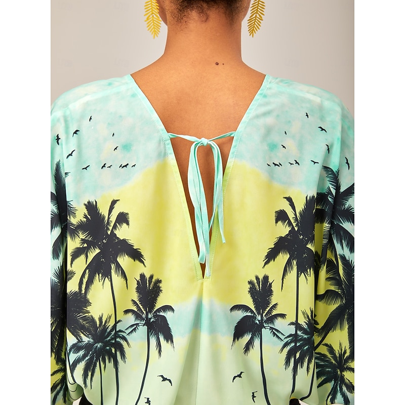 More information about Gradient Palm Tree Print Casual Beach Bodysuit Vacation Style