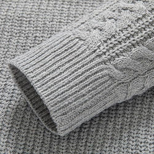 trending ! Men's Autumn and Winter Half High Neck Cross with Leather Buckle Knitted Sweater Slim Fit Long Sleeve Tops,M,Grey