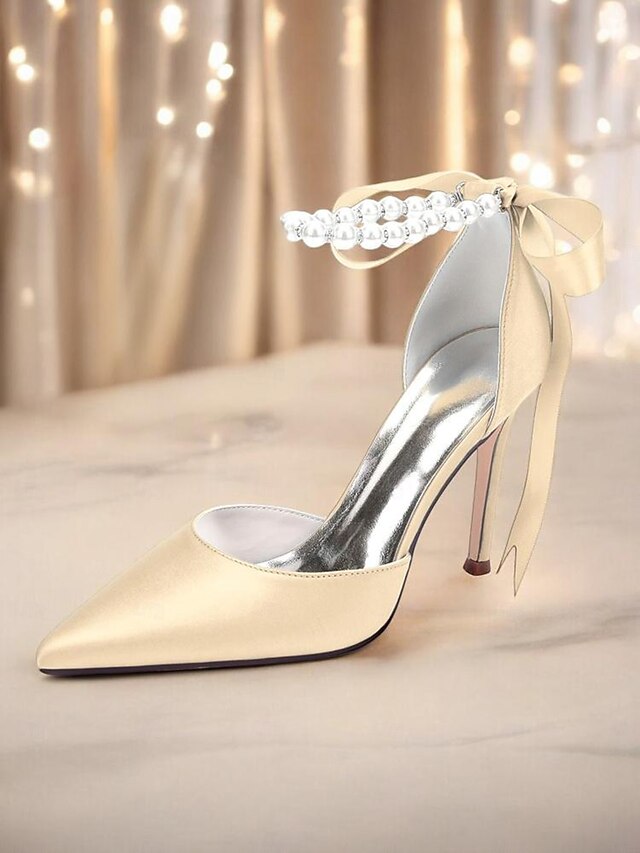 Why Choose Women's Champagne Satin Wedding Heels with Pearl Ankle Strap - Elegant Bridal & Cocktail Stiletto Pumps?