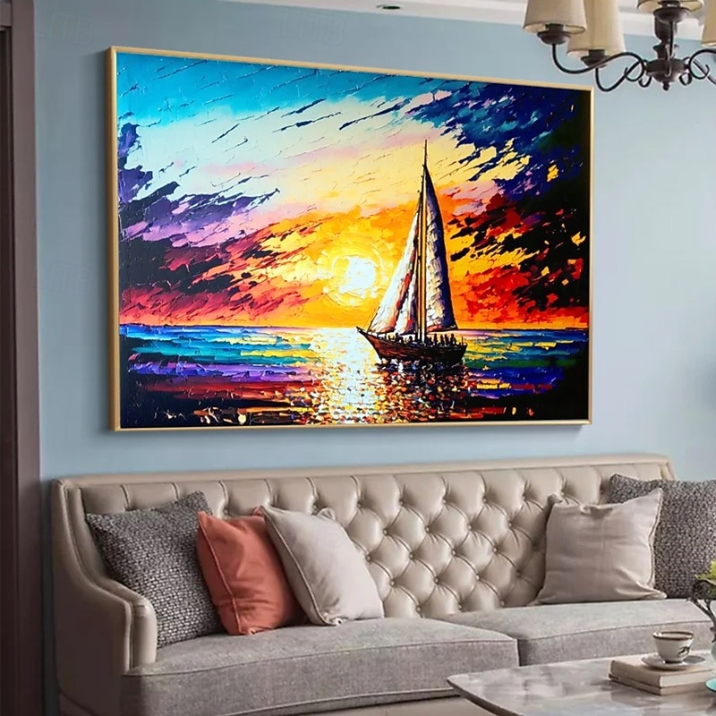 $108.99 - Handmade Oil Painting Canvas Wall Art Decoration Sailing Sunset Seascape for Home Decor Rolled Frameless Unstretched Painting 2025. Shop for cheap Landscape Paintings online? Buy at lightinthebox.com on sale today!