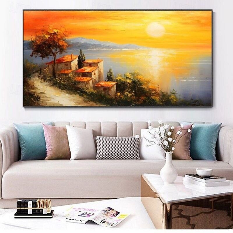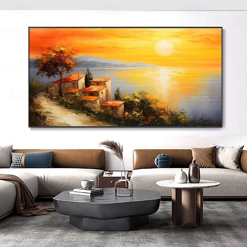 $100.99 - Handmade Oil Painting Canvas Wall Art Decoration Sunset Village Seaside Town Ocean Landscape Texture Abstract Orange Sky Knife Painting for Home Decor Rolled Frameless Unstretched Painting 2025. Shop for cheap Landscape Paintings online? Buy at lightinthebox.com on sale today!