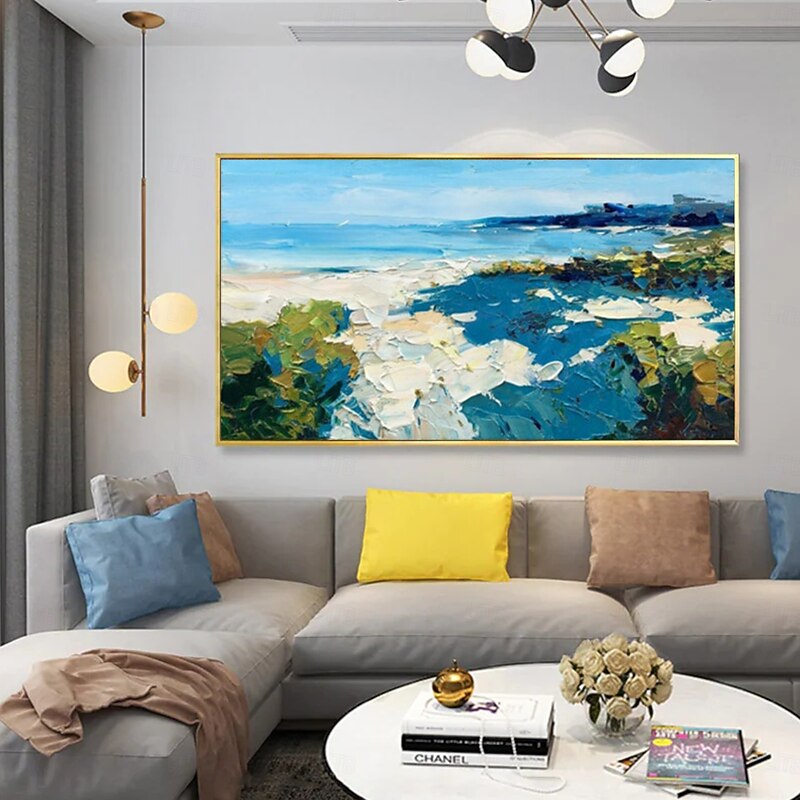 Why Choose Oil Painting Hand-painted Wall Art Abstract Knife Painting Sea View Home Decoration Decoration Scroll Canvas Frameless Unstret?