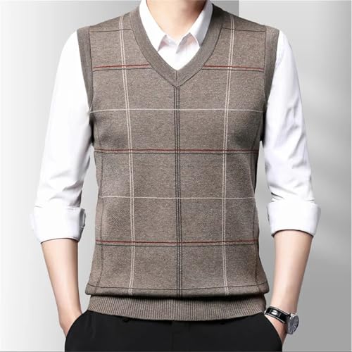 trending ! Mens Knitted Sweater Plaid Sweater Vest Men Slim V-Neck Sleeveless Vest Sweater