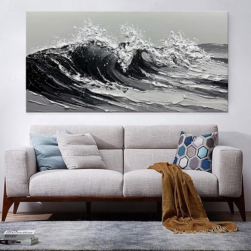 $58.99 - Handmade Oil Painting Canvas Wall Art Decoration Modern Black and White Sea Wave Abstract Texture for Living Room Home Decor Stretched Frame Hanging Painting/Rolled Frameless Unstretched Painting 2025. Shop for cheap Abstract Paintings online? Buy at lightinthebox.com on sale today!