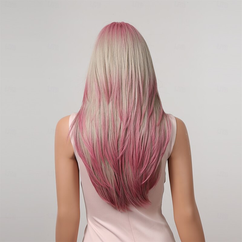 More information about Synthetic Wig Uniforms Career Costumes Princess Straight kinky Straight Middle Part Layered Haircut Machine Made Wig 22 inch Gold Pink Synthetic Hair Women's Cosplay Party Fashion Blonde