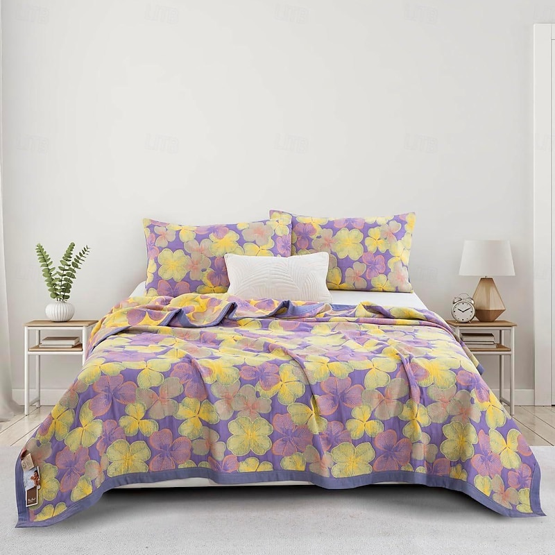 trending ! Summer Air-con Blanket 100% Cotton 3-layer Gauze Multifunctional Gauze Air Conditioning Blanket Bed Cover