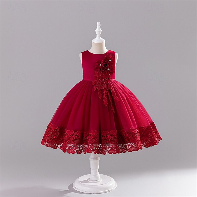 This Flower Girl Dress Kid's Girls' Princess Dress Performance Wedding Party Elegant elegant Lace Solid Color Sleeveless Crew Neck Pink Red 4 years+ combines elegant design with practical functionality. Every detail has been carefully considered to ensure you get the best possible experience. The top-grade construction means this product will serve you well for years to come.