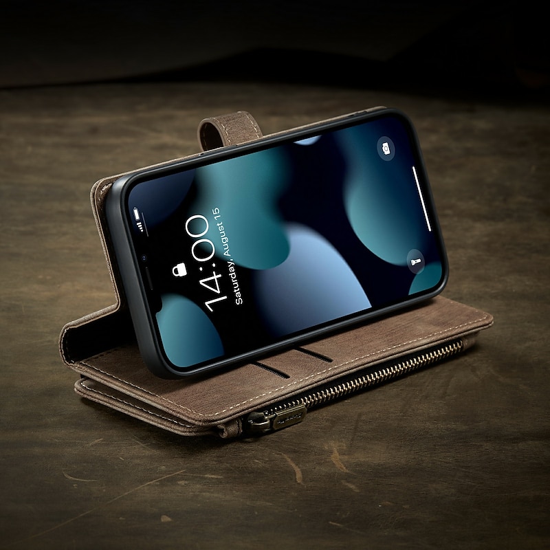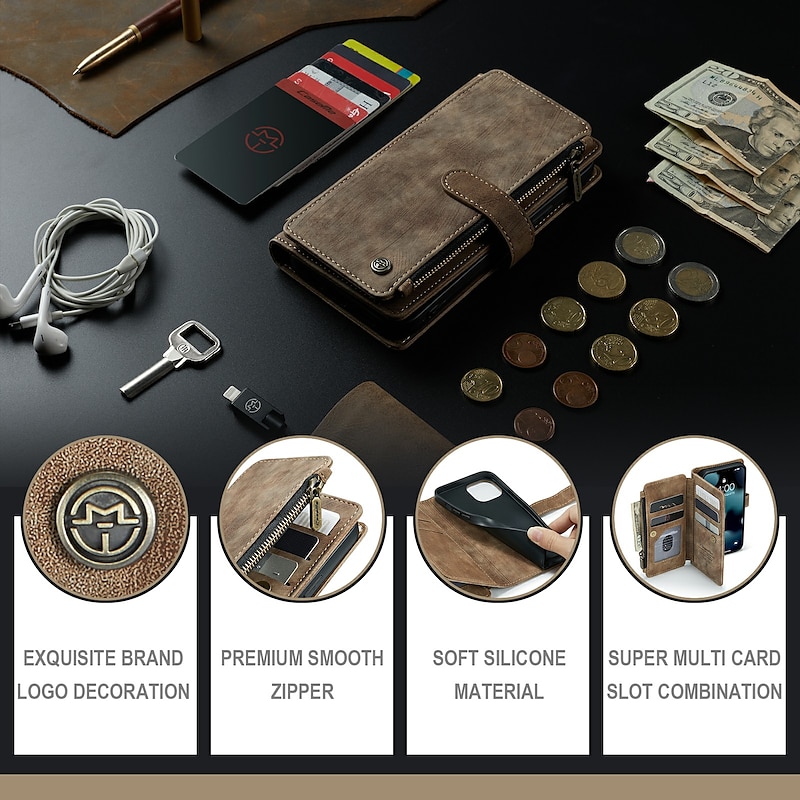 More information about Phone Case For iPhone 17 Pro Max 17 Air 16 15 14 Pro Max Plus 13 12 11 Pro Max Mini Wallet Case Flip Cover with Stand Holder Zipper Full Body Protective Retro PU Leather