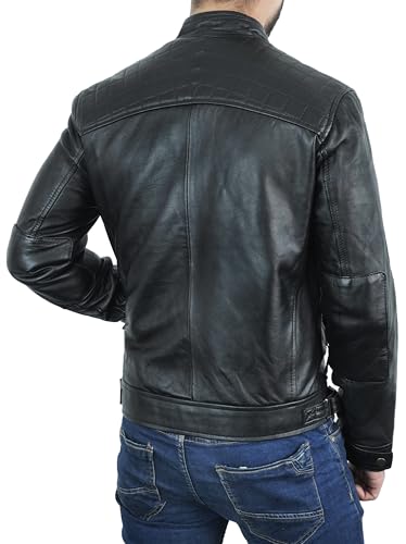 Mens Leather Jacket - Real Lambskin Moto Style Leather Jacket Men