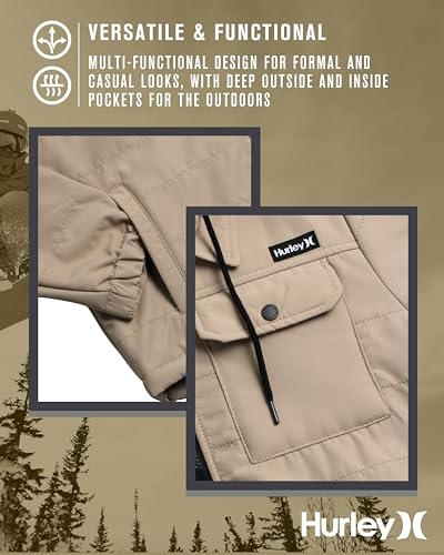 • SUPERIOR COMFORT AND WARMTH: Experience unparalleled comfort with this sherpa-lined, mens winter jacket from Hurley. Ideal for chilly days, it combines the insulating properties of a heavyweight hoodie with the style of mens jackets casual contemporary. Elevate your men's clothes collection with this essential piece, perfect for any wardrobe looking to add both warmth and style.