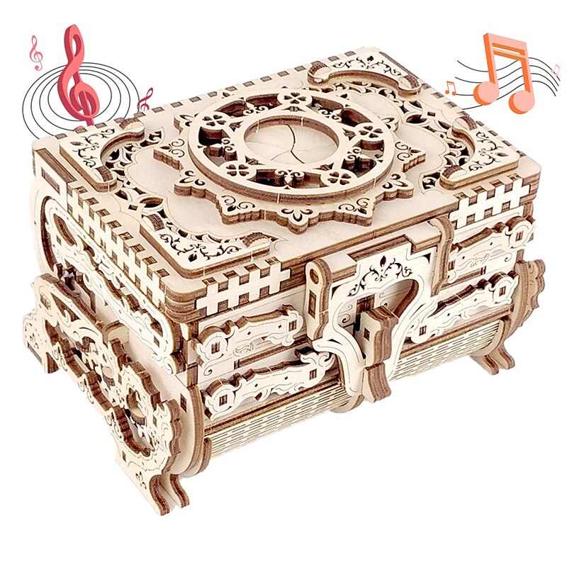 trending ! Women's Day Gifts 3D Wooden Puzzle Antique Jewel Box Music Box Kit DIY Home Decoration Laser-Cut Mechanical Model Mother's Day Stunning Gifts for Adults Mother's Day Gifts for MoM
