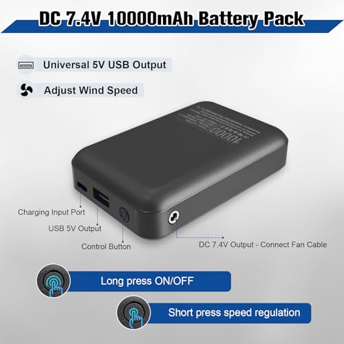 • [10000mAh Battery Pack] The air-conditioned shirt uses DC 7.4V to drive the fan's rapid rotation. When there is Maximum wind, the electric 4pcs fan vest lasts 6 hours. safe charge and less power consumption. The rechargeable battery also be used as a power bank to power your electronic devices outdoors.