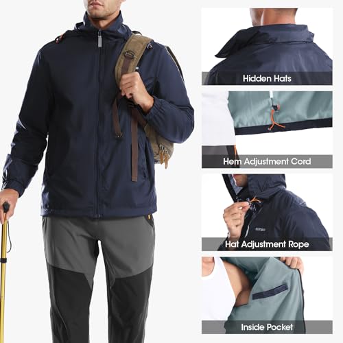 Mens Waterproof Jacket Outdoor Lightweight Hooded Windbreaker Travel Hiking Windproof Raincoat