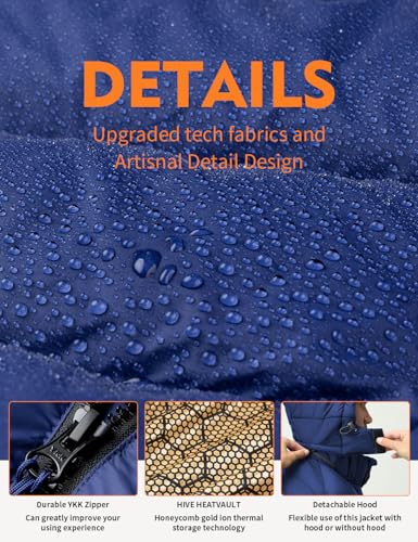 More information about Men's Heated Jacket With 12V Battery Pack-Insulated Lightweight Hooded Hand-Heating Electric Heated Puffer Jacket (US, Alpha, Large, Regular, Regular, Blue)