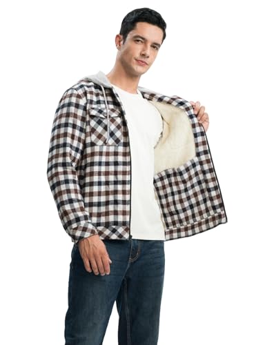 trending ! TBMPOY Men's Flannel Shirt Jacket Fleece Lined Plaid Sherpa Full Zip Winter Hoodie comfortable Coat Casual Zipper Pockets