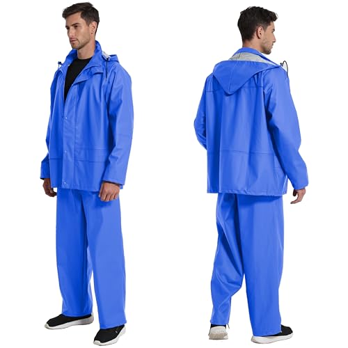 trending ! Men's Workwear Rain Suit - Hi Vis Waterproof Jacket&Pants 3-piece Set, Foul Weather Gear for Safety