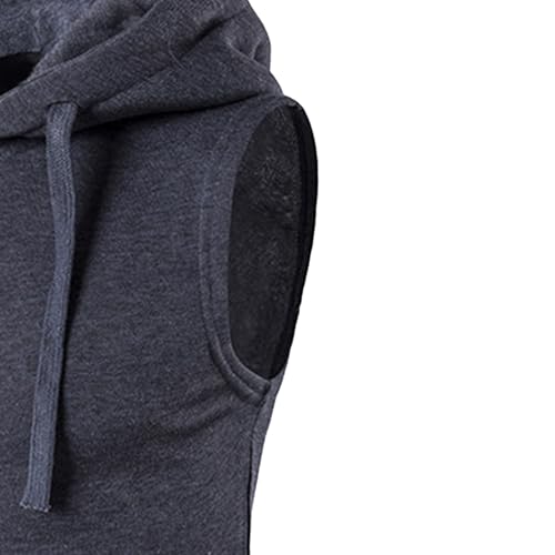 JEShifangjiusu Men's Pulling Rope Hood Vest Zipper Ribbed Bottom Swing Sleeveless Jacket Casual Blending Outerwear