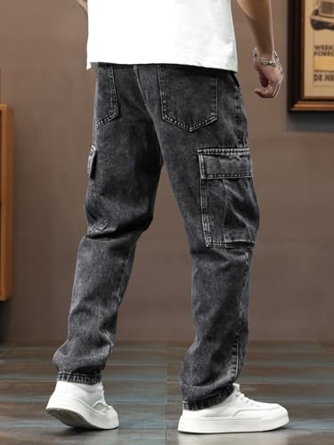 More information about Men's Tapped and Wide Leg Jeans Non-Stretch Loose Fit Hip Hop Cargo Jeans with Multi-Pocket