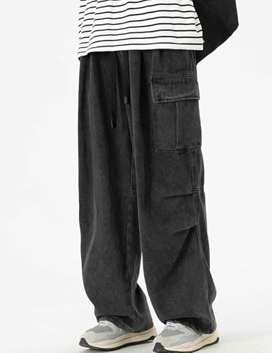 trending ! Y2k Cargo Jeans Men Wide Leg Loose Skater Jeans Hip Hop Cargo Pants Grunge Clothes Harajuku Streetwear