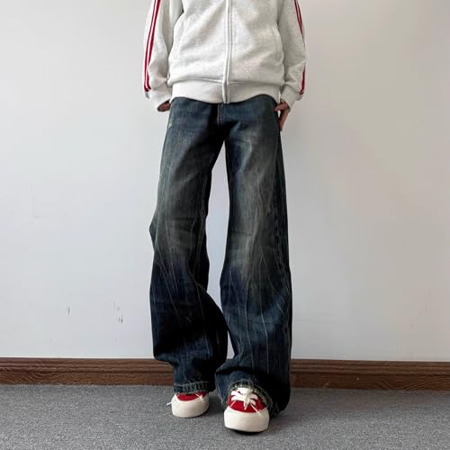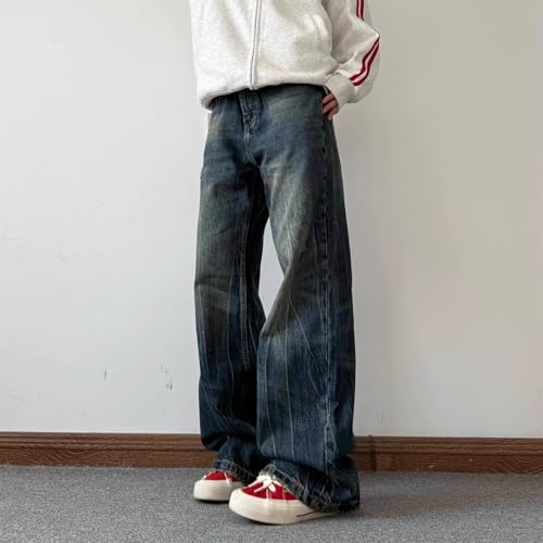 trending ! Men's Jeans Summer American Straight Denim Wide Leg Long Pants for Men