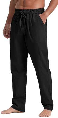 trending ! NITAGUT Mens Linen Pants Casual Elastic Waist Drawstring Lightweight Summer Beach Trousers with Pockets