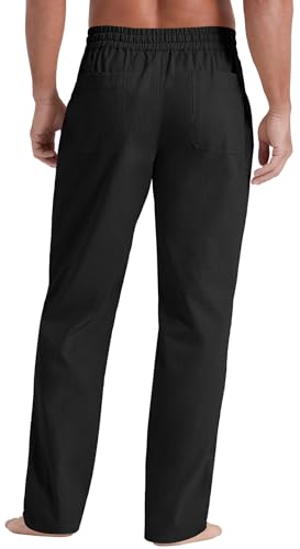 • Product Features: These casual trousers feature an elastic waistband with coulisse for adjustable comfort. 4 Pockets: Featuring two hand pockets and two drop-in back pockets, these men's casual linen pants provide ample space to securely store your phone and other essentials.