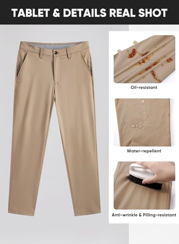 Fabric type: 98% Cotton, 2% ElastaneCare instructions: Machine WashOrigin: ImportedClosure type: Button and Zipper ClosureCLASSIC FIT & COMFORT: Comfortable and well-fitting with a straight-leg design for easy movement. The naturally contoured waistband offers a secure and comfortable fit, making these pants perfect for all-day wear, whether you're at work or outdoorsTRIPLE-SHIELD FABRIC TECHNOLOGY: Cotton-blend chinos engineered with water-repellent, stain-resistant, and oil-resistant protection. Spills bead up and wipe off easily—ideal for busy commutes, coffee runs, or outdoor adventuresVERSATILE CASUAL-TO-SMART STYLE: Clean flat-front design transitions effortlessly from daily errands to business casual settings. Pair with a polo for weekend outings or a dress shirt for office-ready polishPRACTICAL DETAILS FOR ACTIVE LIVING: Features two deep front slant pockets (fit phones securely) and two reinforced button-through back pockets. Machine washable for easy care—retains its look wash after washPACKAGE CONTENTS & SIZING: Includes 1 x Men’s Chino Pants. Please refer to the size chart before ordering to ensure the best fit Perfect for everyday use. excellent materials and excellent craftsmanship ensure long-lasting durability.