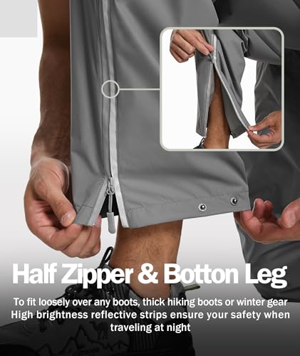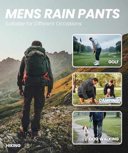 Mens Golf Hiking Rain Pants Lightweight Waterproof Breathable Mesh Lining Windproof Outdoor Pants with 3 Zipper Pockets