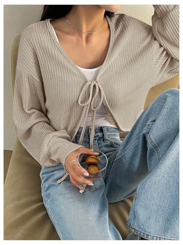 Fabric type: 95% Polyester, 5% ElastaneCare instructions: Machine WashOrigin: ImportedClosure type: Pull OnFabric: Made from a breathable and lightweight fabric blend that feels velvety against the skin, offering comfort for all-day wearFeatures: Tie front cardigan sweater for women, oversized fit, ribbed knit material, v neck, long sleeve, solid color, casual outerwearOccasions: Nice choice for daily wear, office work, casual weekend, going out, streetwear, dating, vacations, hanging out with friends, shopping, airport travel, etcStyling Options: An ideal layering for your casual outfits, like bandeau top, camisole tank, spaghetti strap dress or swimwearSize: Please check our size info in the product description below or the last picture before ordering Perfect for everyday use. excellent materials and excellent craftsmanship ensure long-lasting durability.