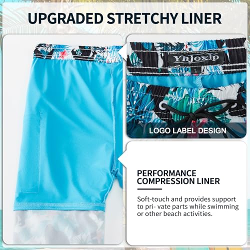 trending ! Mens Swim Trunks 9 Inch Inseam Stretch Board Shorts Built-in expedient Dry Swimwear Bathing Suits with Compression Liner