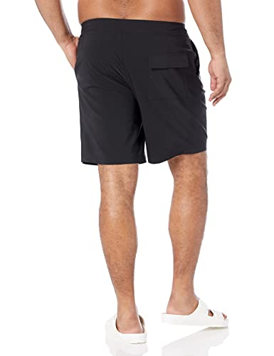 Fabric type: 90% Polyester, 10% ElastaneCare instructions: Machine Wash Warm, Tumble Dry LowOrigin: ImportedClosure type: DrawstringFIT: cozy, easy fit through the hip and thigh with a straight leg. Sits below the waistPERFORMANCE FABRIC: Lightweight and breathable quick-dry swim fabricThis product contains 90% Global Recycled Standard (GRS) certified recycled polyester9 BOARD SHORT: Quick-dry swim shorts that are designed for performance and all day comfort in the sunDETAILS: This unlined, regular fit board short is designed to sit above the knee with a flat waistband and tie fastening. Side pockets and single rear pocket with a hook and loop="loop" closure for keeping small essentials on hand Perfect for everyday use. finest materials and excellent craftsmanship ensure long-lasting durability.