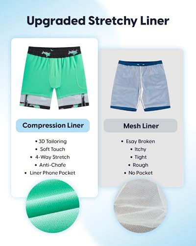 • 2-in-1 Design: Swimming trunks for men feature a built-in compression lining with 4-way stretch offers support and minimizes chafing. Combined with ergonomic 3D tailoring, it delivers enhanced protection and exceptional comfort in sensitive areas