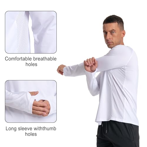 Men's UPF 50+ Long Sleeve Loose-Fit Lightweight Sun Protection Fishing Hiking Running UV Shirt Rash Guard